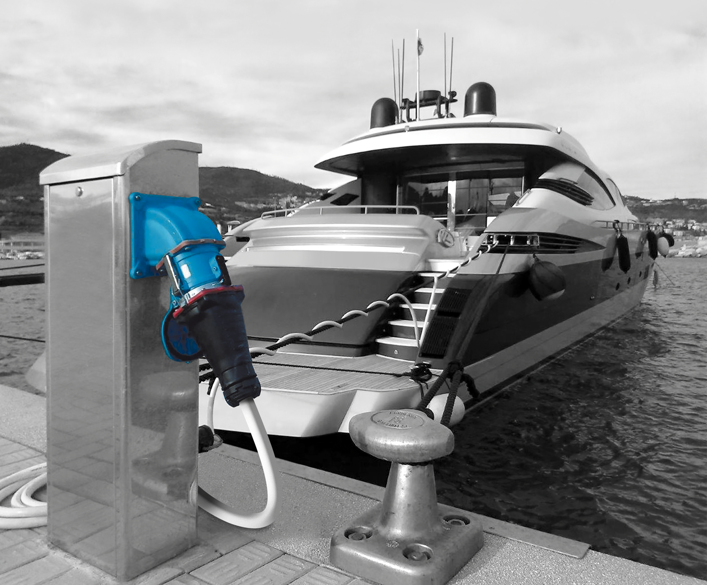 Elle couvre à présent le raccordement BT à quai de tous les bateaux quelle que soit leur taille.