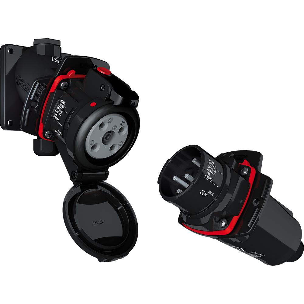 DXN DECONTACTOR is a compact industrial plug & socket-outlet with an integrated circuit breaker for use in potentially explosive atmospheres (zones 1, 2, 21, 22).