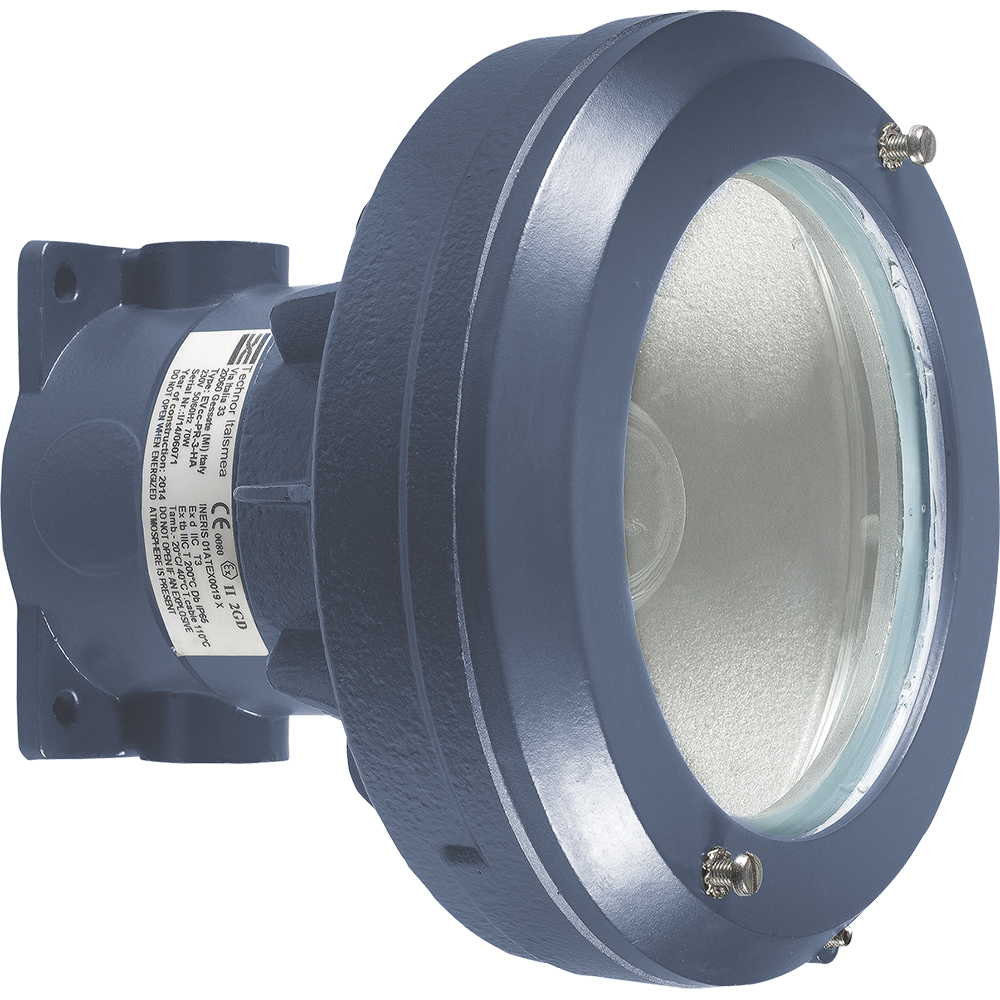 ‘Copper-free aluminium tank inspection lantern designed for use in potentially explosive atmospheres and suitable for use in zones 1 & 2 (gas), 21 & 22 (dust). These lanterns are recommended for applications where high light performance is required to illuminate extremely dark spaces such as tanks and/or water towers.’